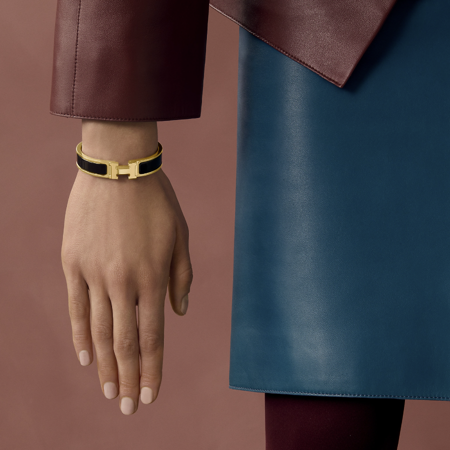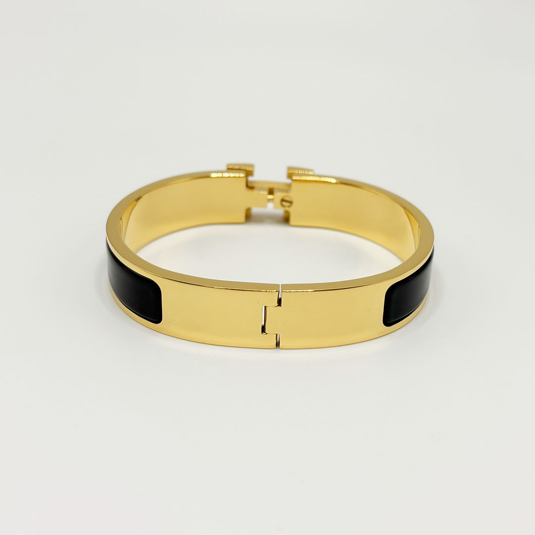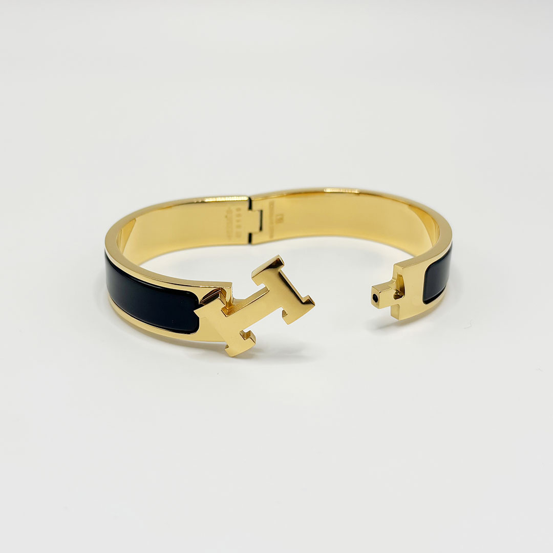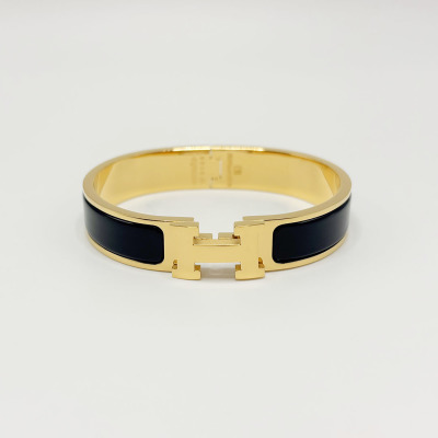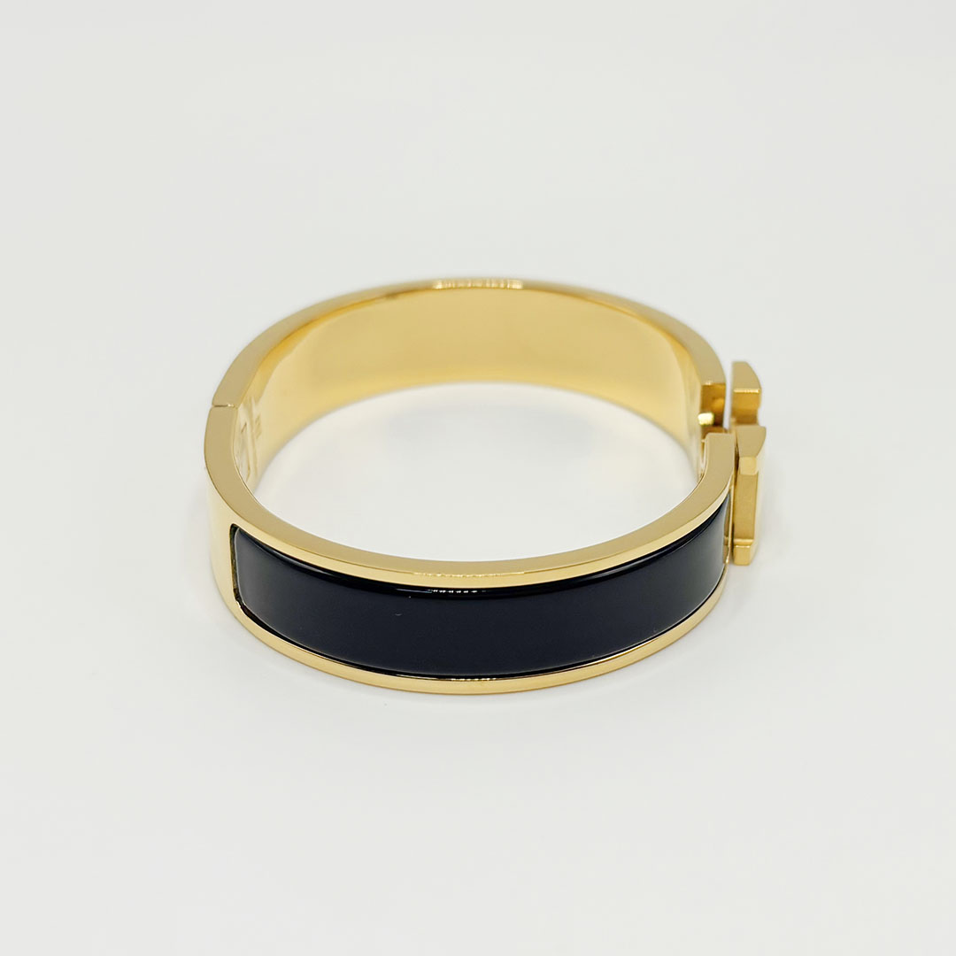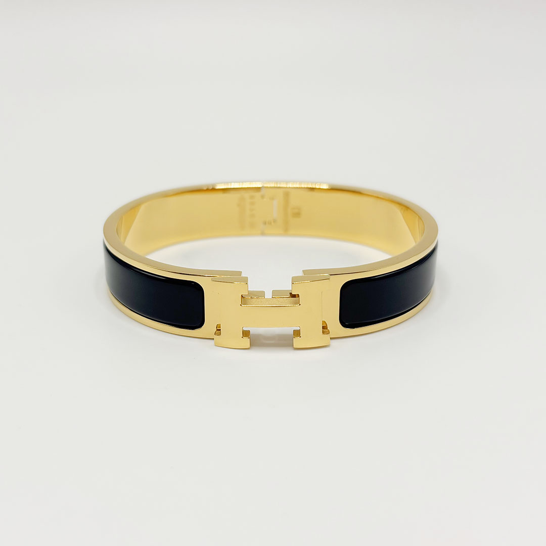 Hermès Black enamel H-buckle bracelet wide 12mm--Luxury Jewelry