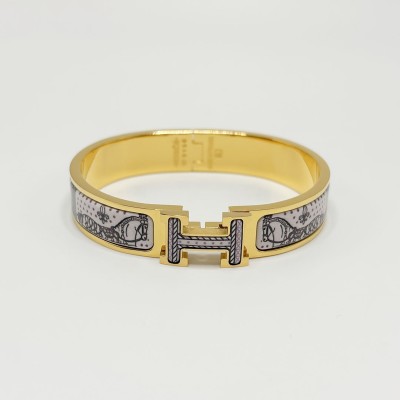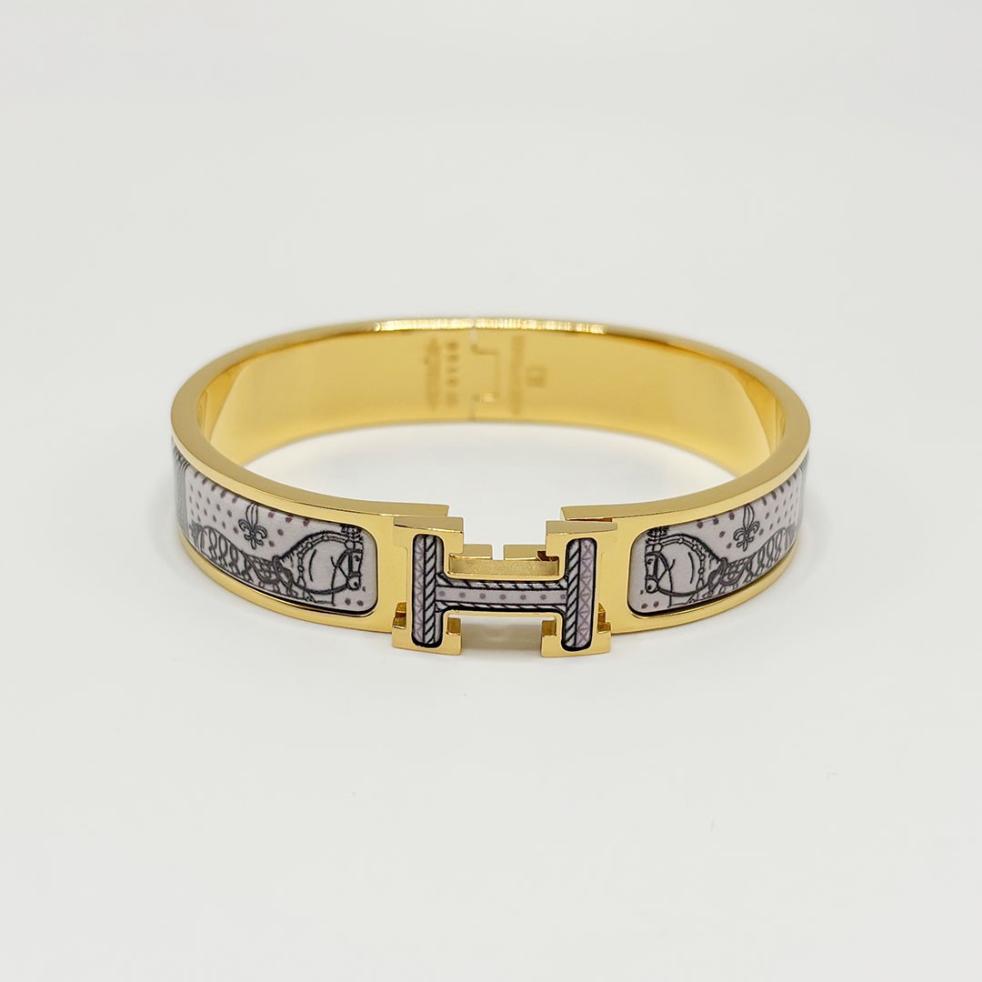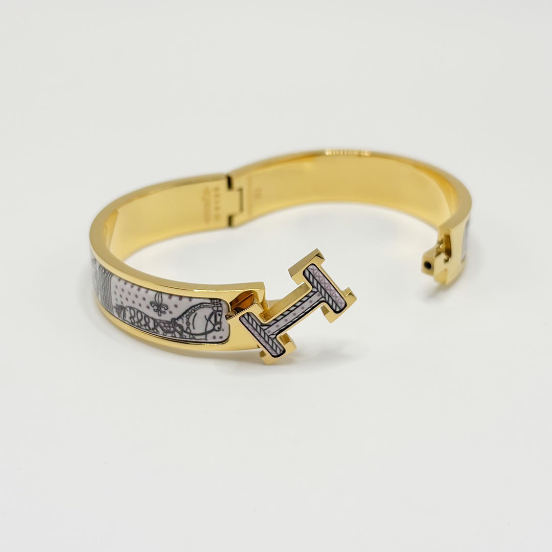 ![]() ![]() | Hermès Black and white horse enamel H-buckle bracelet wide 12mm Inner Circle 17mm
