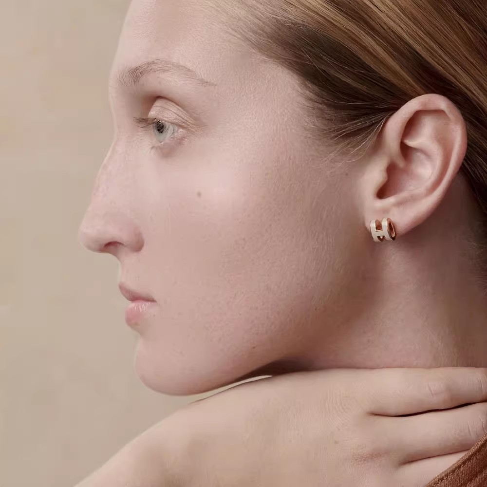 Hermès Milk tea color enamel H-buckle bracelet wide 12mm Inner Circle 17cm