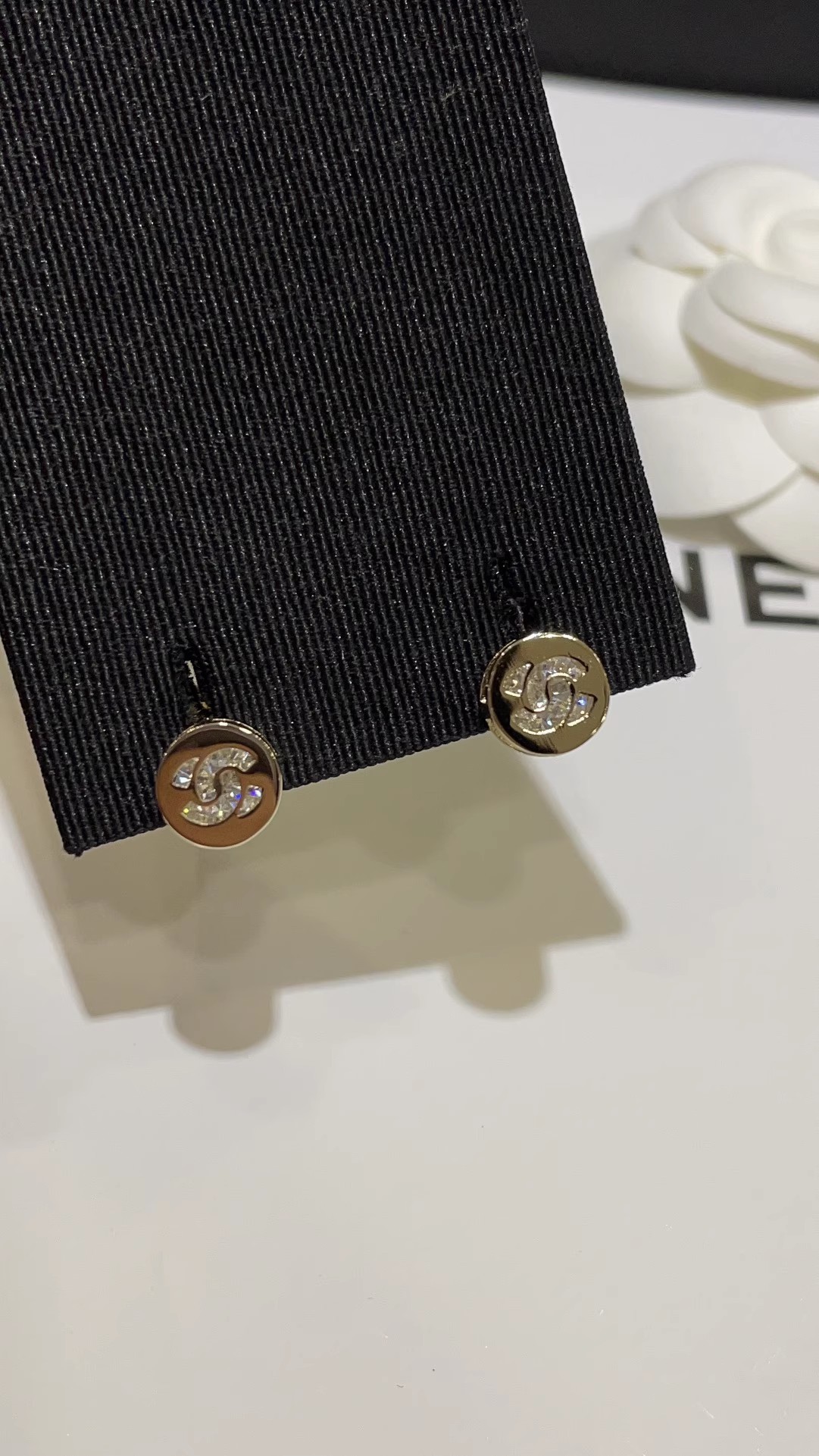 Chanel pair C Rhinestone Straight earrings20*15mm