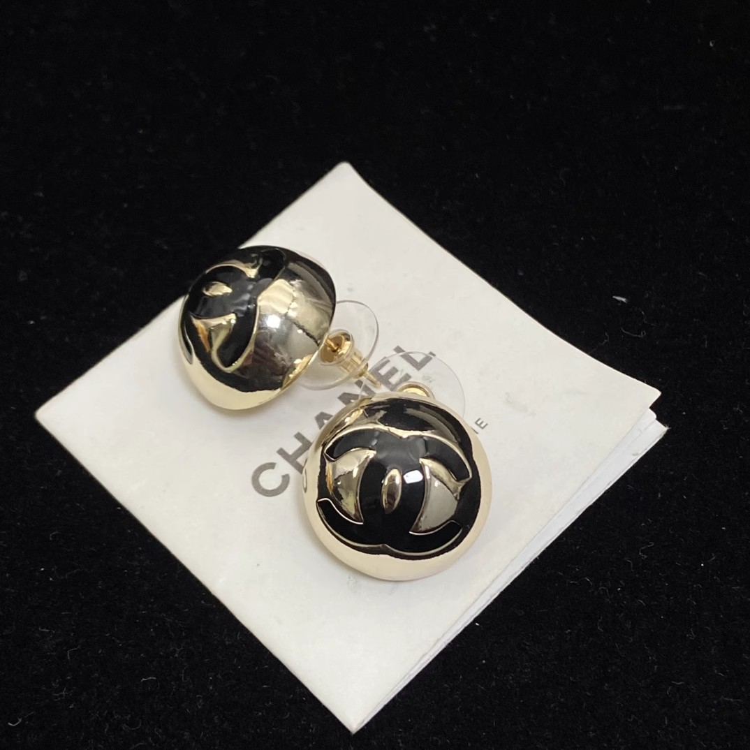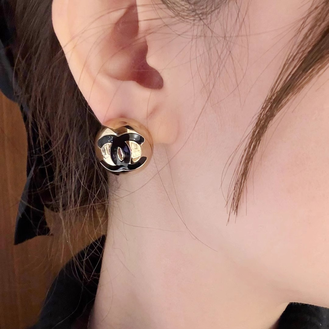 Chanel Black and gold double C semi-rod bead earrings 20mm--Luxury Jewelry
