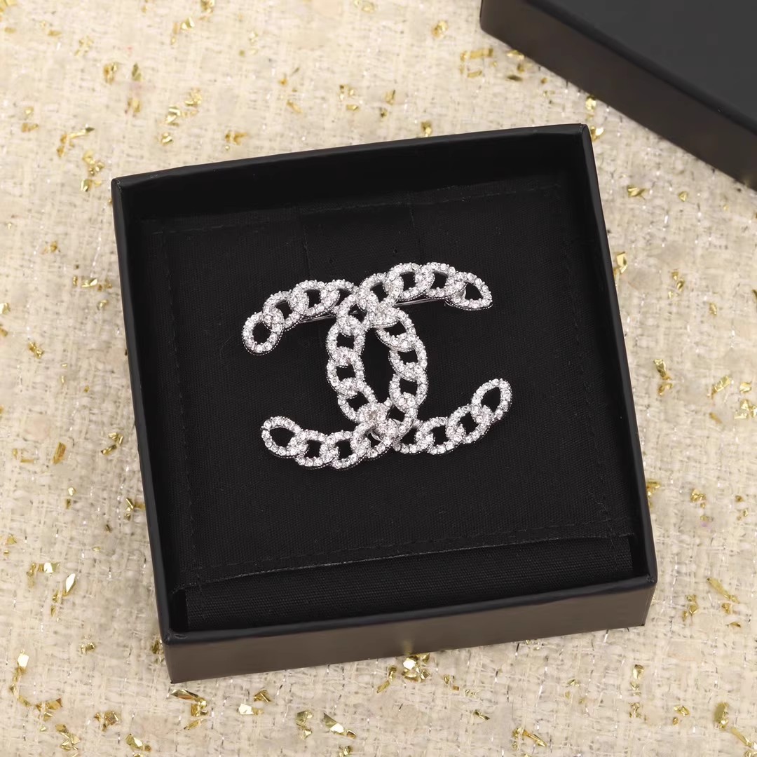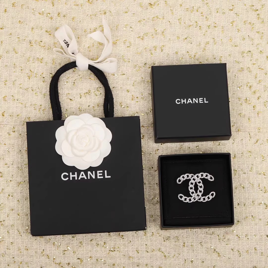 Chanel Rhinestone ring double C brooch 45*35mm--Luxury Jewelry