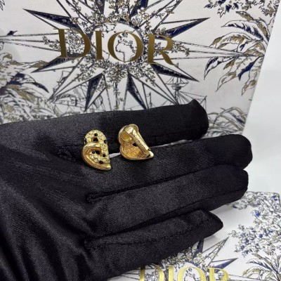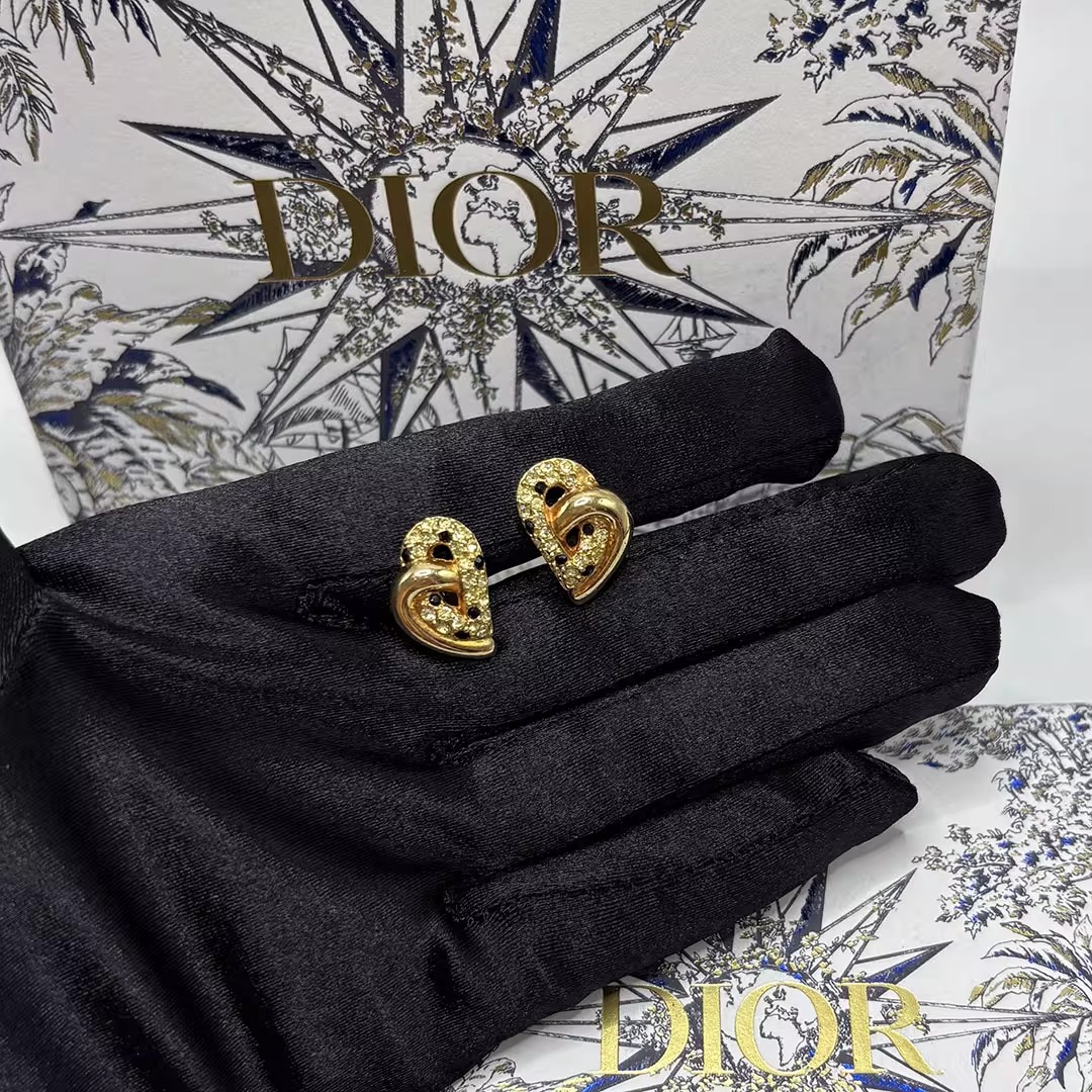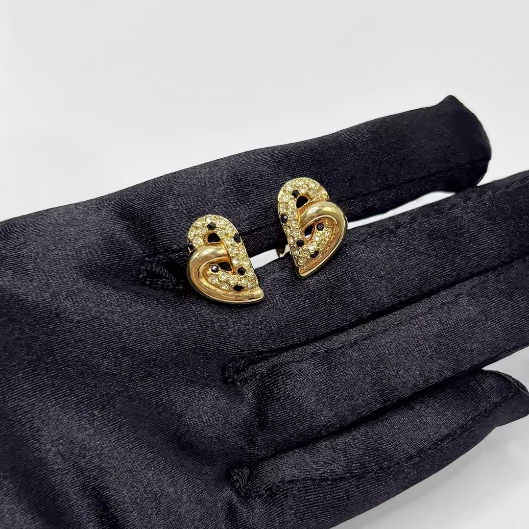 Dior Black and white rhinestone love clip earrings 18*12mm--Luxury Jewelry