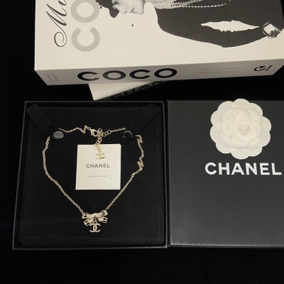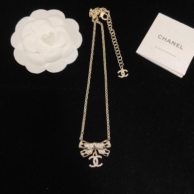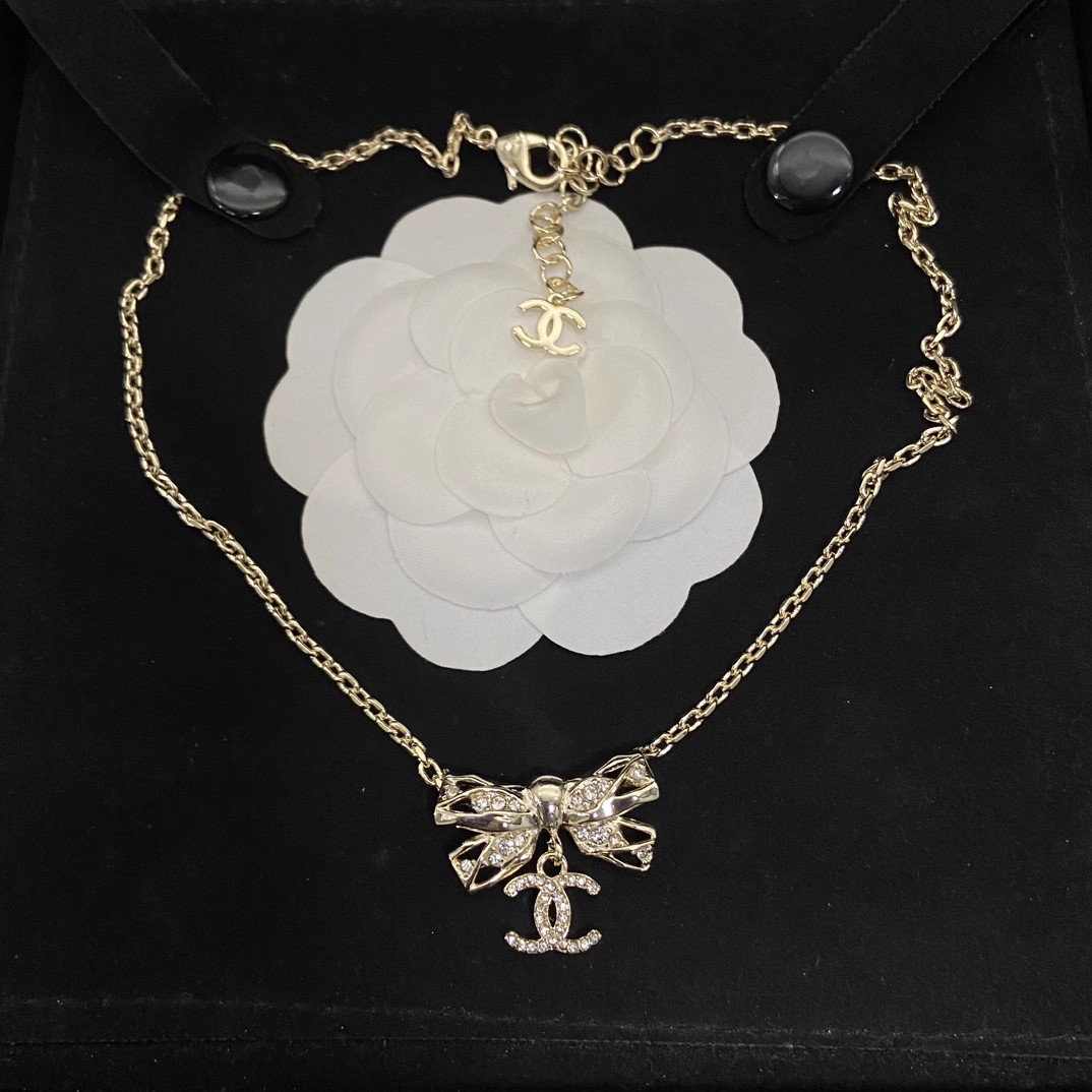 Chanel rhinestone bow 3cm long necklace 40+6cm--Luxury Jewelry